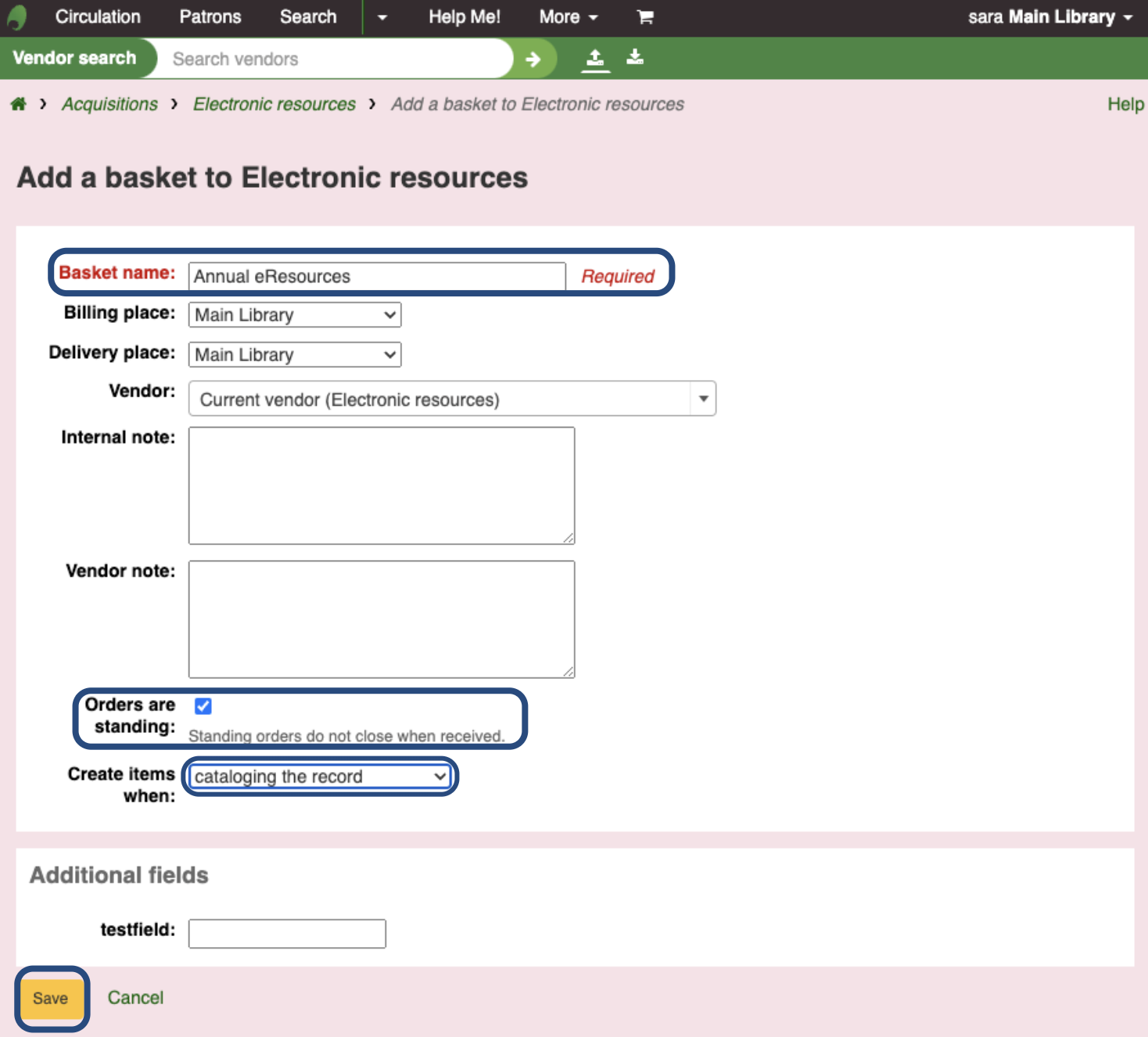 Click 'Save' to create the order line. Note that since this is a standing order, you will not close the basket.