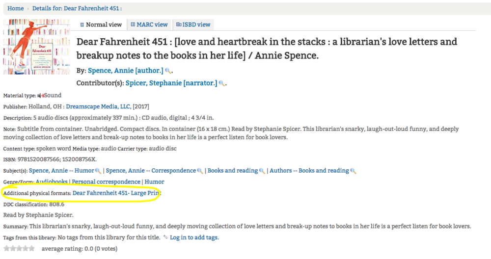 Have you ever wished you could find an easy way to connect different physical formats of an item? For example, wouldn’t it be great to have a link from a book to the audiobook version of an item? Well now you can!