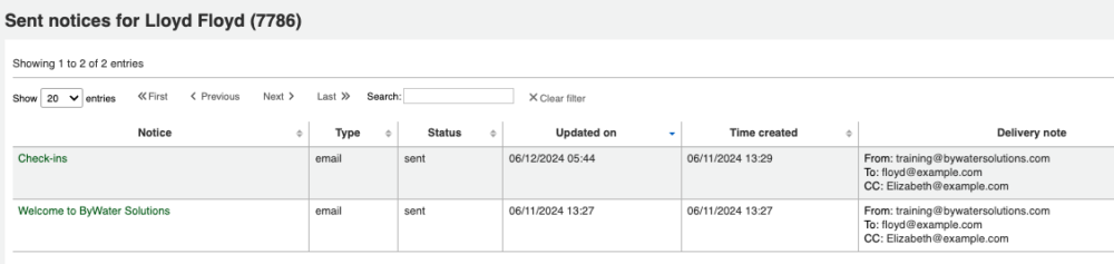 Libraries will have the option to copy the guarantor's email when emailing the guarantee notices. The system preference for this is RedirectGuaranteeEmail. This system preference, if enabled, will email both the guarantee and the guarantor. Staff will be able to see the to/from/cc email addresses within the Notices from the patron's account.