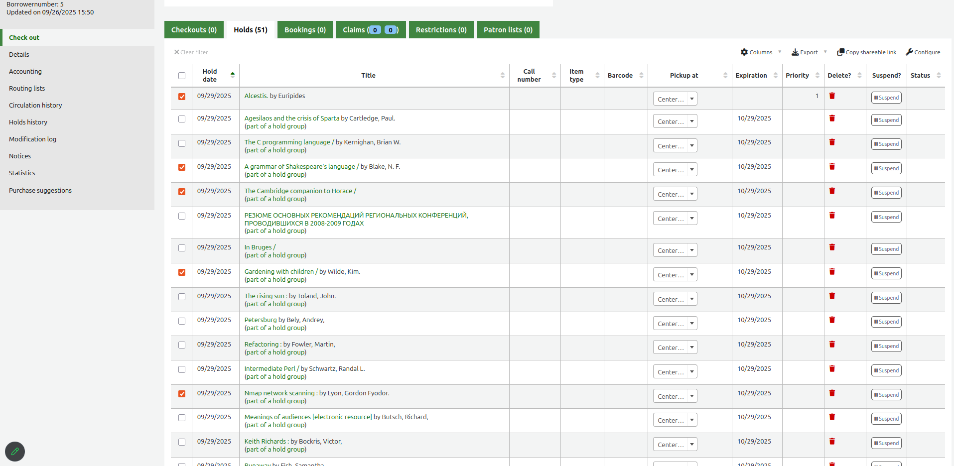 Note that in addition to the maximum numbers of holds above, a global maximum is set in the maxreserves system preference. Make sure that the maxreserves number is set properly in addition to any limits in your circulation and fine matrix.
