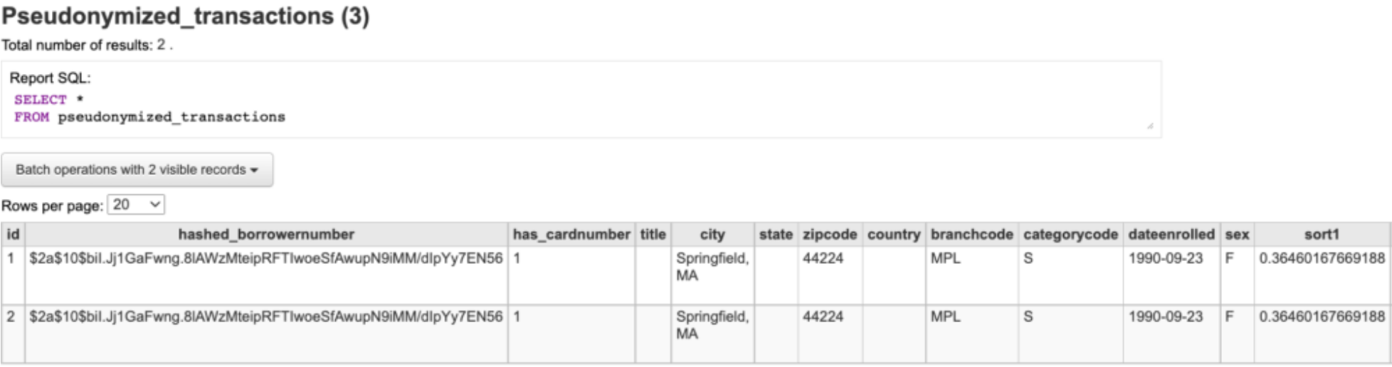 "pseudonymized" tables in the database. Borrower numbers are encrypted